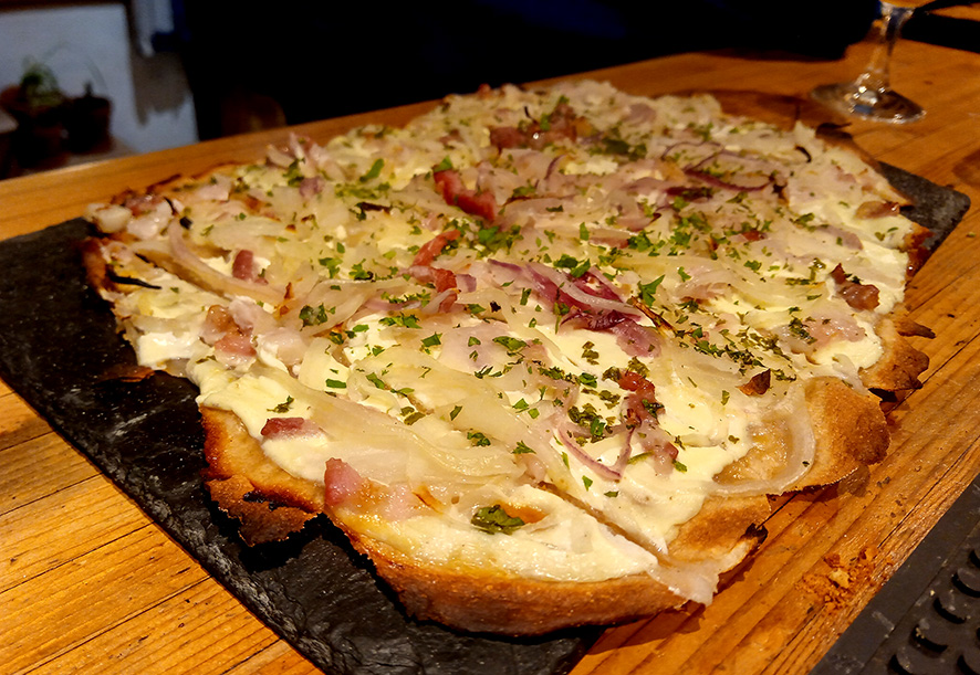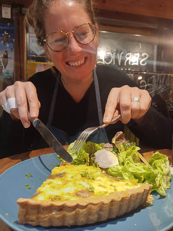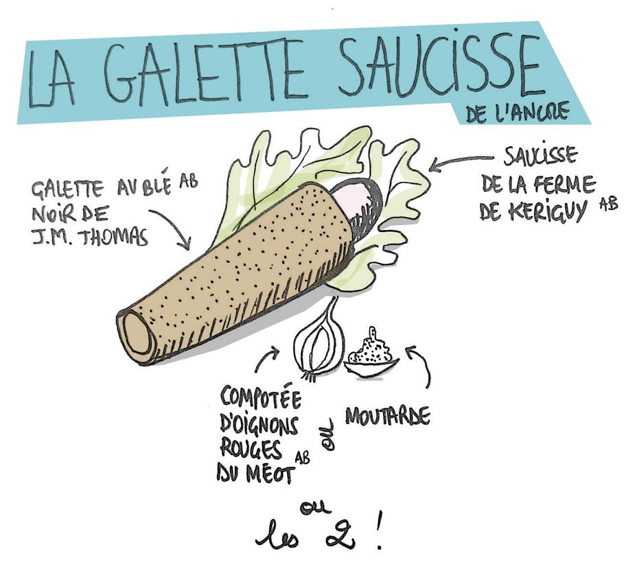 - La célèbre Galette-saucisse à la Schultz, un mélange de saveurs Alsaco-Bretonne le tout avec une galette au sarrasin maison, grillée au beure. Pour les végétariens la Galette avec sa fondue de poireaux et son chèvre du Squiffiec. Un régal !